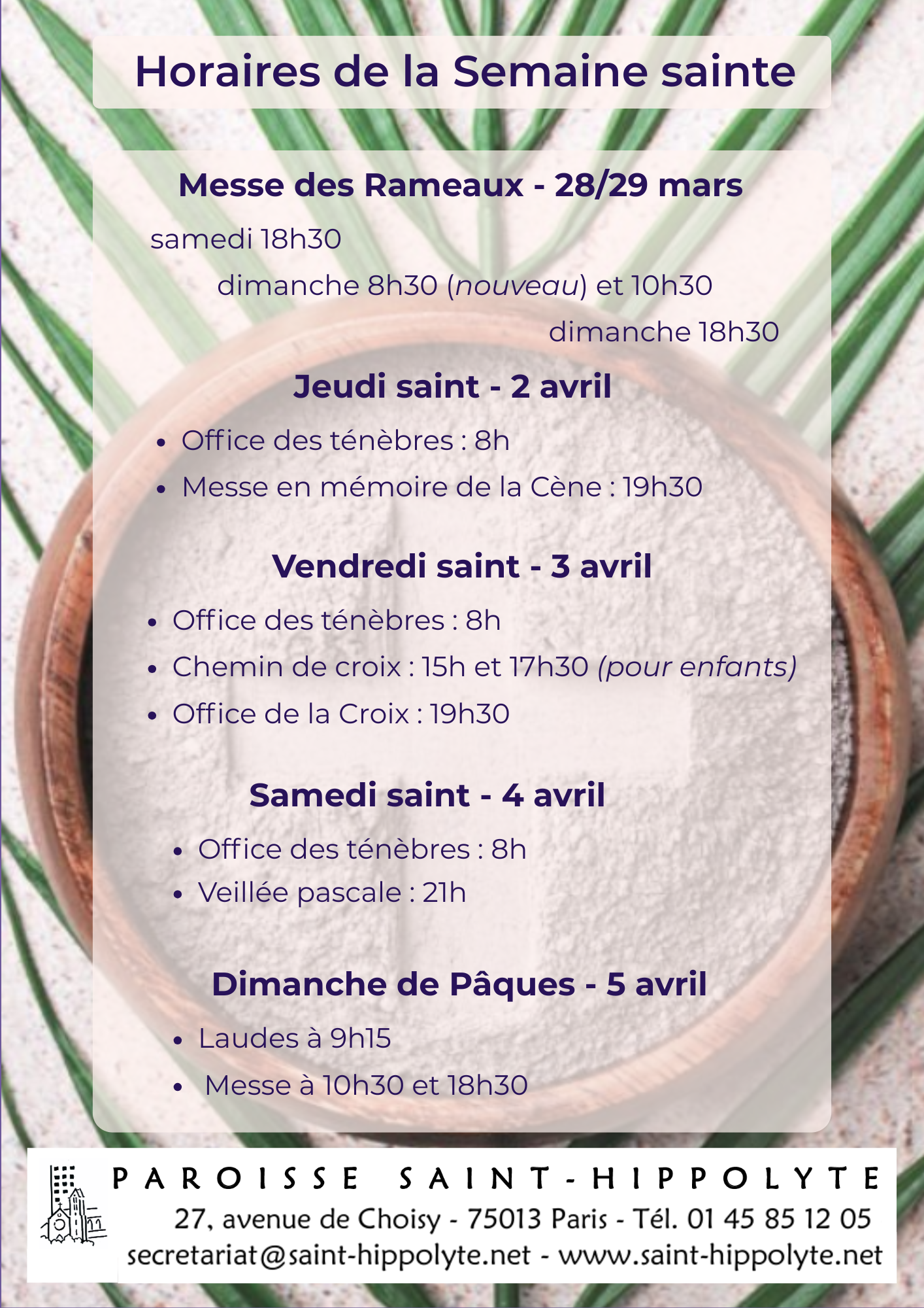 L’accueil paroissial, porte 5 dans le passage Saint-Hippolyte, est ouvert :